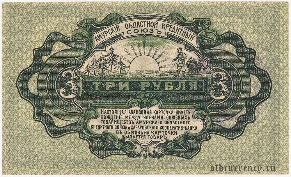 Хабаровск, "Амурский обл. кредитный союз", 3 рубля 1919 года