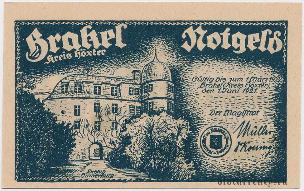 Бракель (Brakel), 50 пфеннингов 1921 года