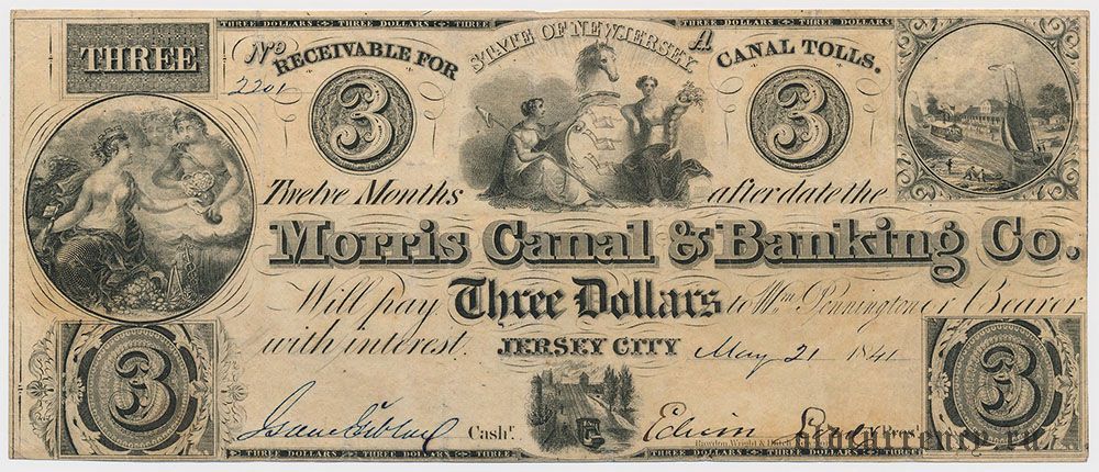 США, Morris Canal & Banking Co., 3 доллара 1841 года