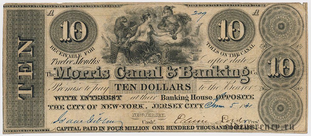 США, Morris Canal & Banking Co., 10 долларов 1841 года