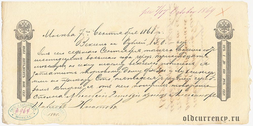 Вексель, 50 копеек 1868 года