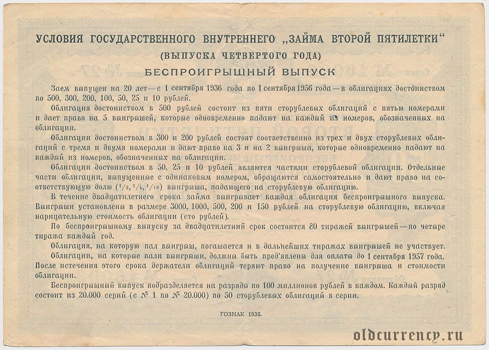 Заем Второй Пятилетки, 50 рублей 1936 года