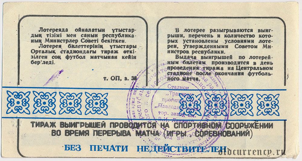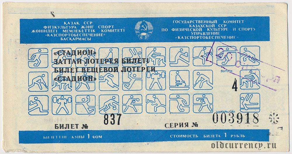 Казахстан, вещевая лотерея "Стадион", 4-й выпуск