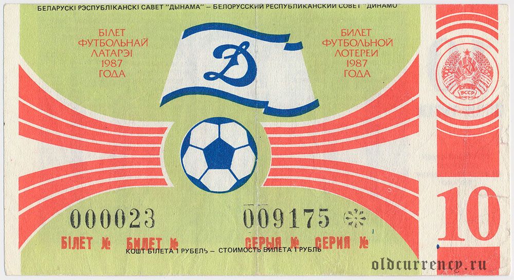 Белорусский республиканский совет "Динамо", футбольная лотерея 1987 года, 10 тираж