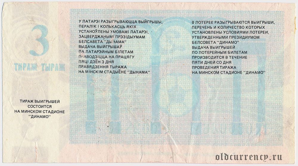 Белорусский республиканский совет "Динамо", футбольная лотерея 1988 года, 3 тираж