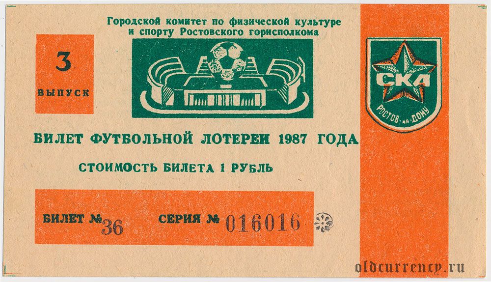 Ростов-на-Дону, СКА, футбольная лотерея 1987 года, 3 выпуск