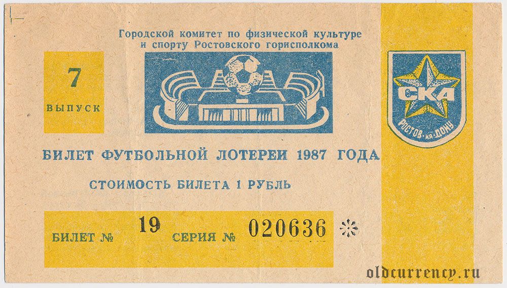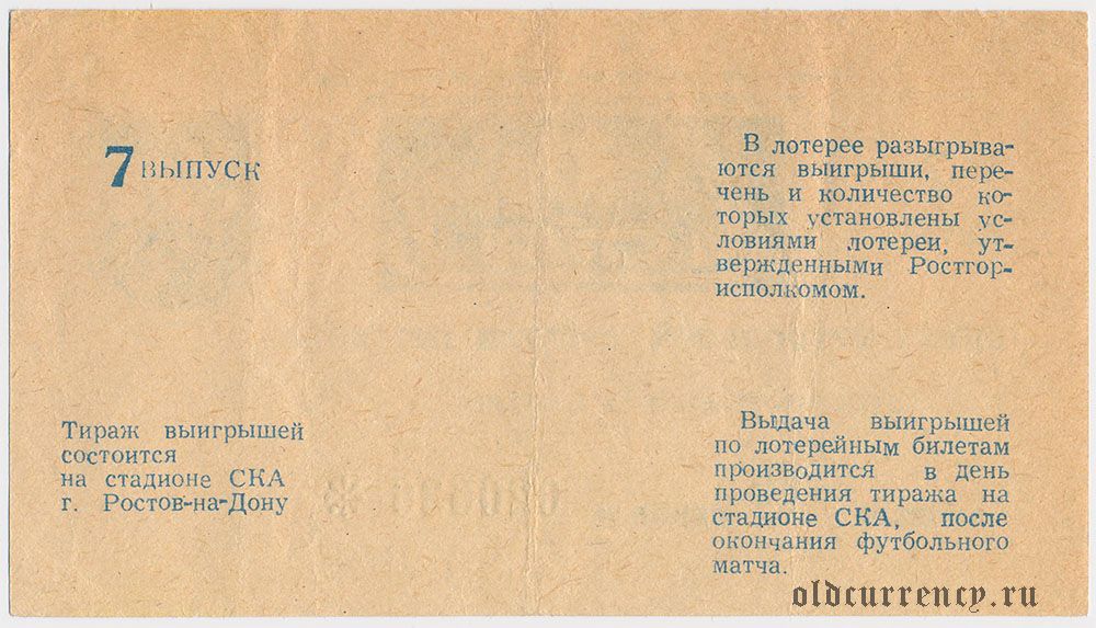 Ростов-на-Дону, СКА, футбольная лотерея 1987 года, 7 выпуск