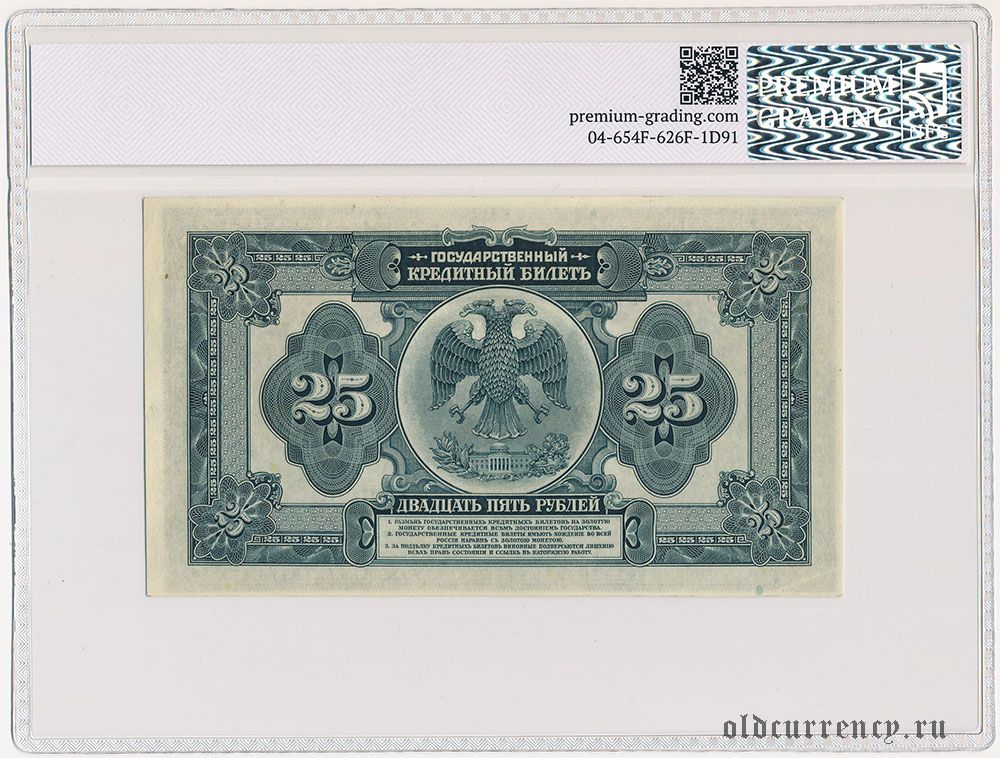 25 рублей 1918 года, государственный кредитный билет, без подписей. В слабе PG