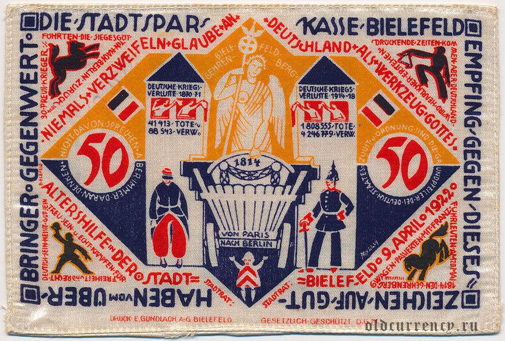 Билефельд (Bielefeld), 50 марок 1922 года. На шелке