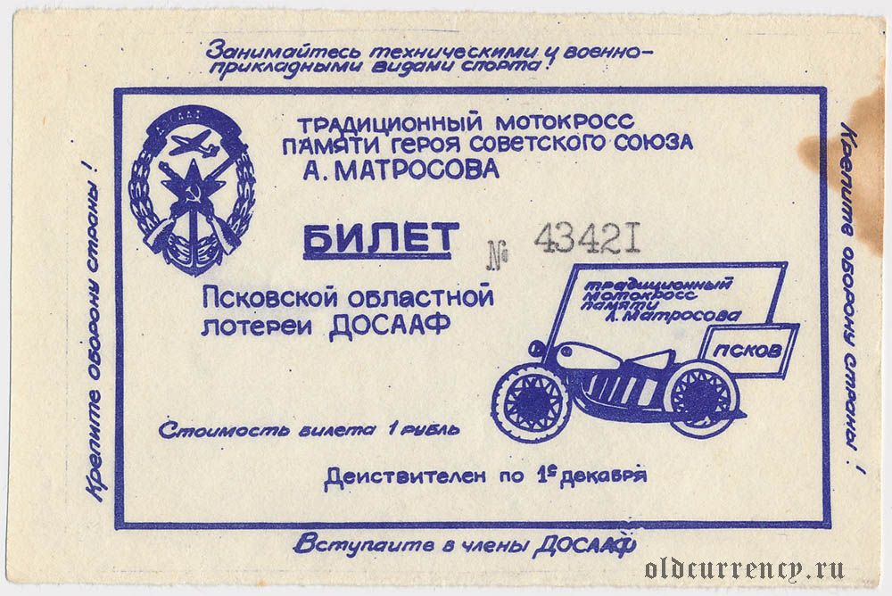 Псков, лотерея ДОСААФ памяти А. Матросова