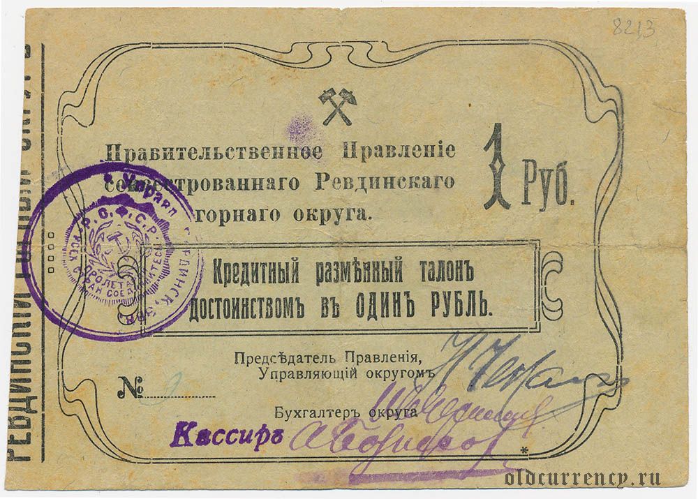 Ревда, Правление секвестрованного горного округа, 1 рубль 1918 года