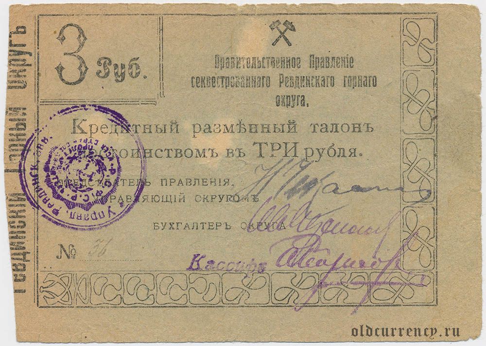 Ревда, Правление секвестрованного горного округа, 3 рубля 1918 года
