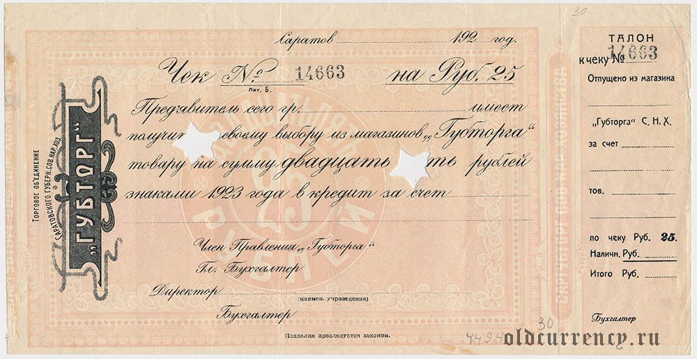 Саратов, ''Губторг'', 25 рублей. С талоном