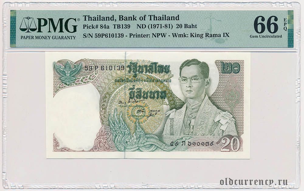 Таиланд, 20 бат (1971-81) года. В слабе PMG