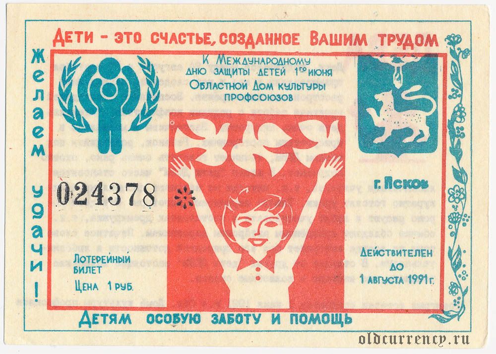 Псков, Международный день защиты детей, лотерея 1991 года, "ДЕВА"