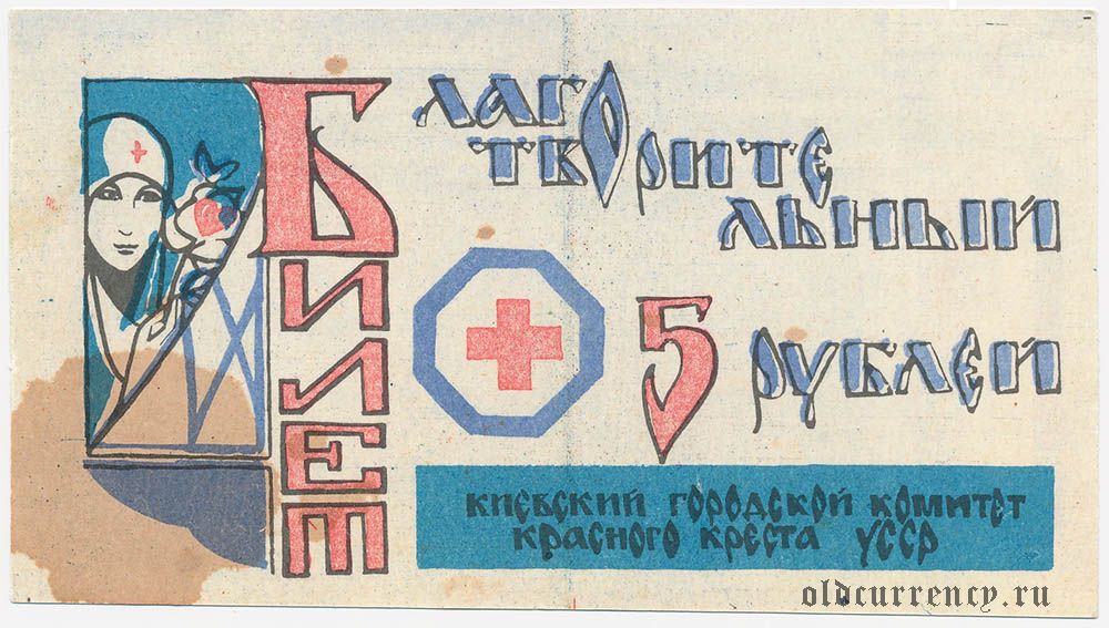 Благотворительный билет Киевского городского комитета Красного креста, 5 рублей