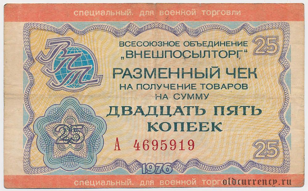 "Внешпосылторг", для военной торговли, 25 копеек 1976 года