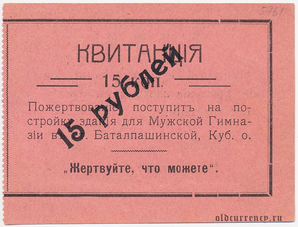 Баталпашинск, 15 копеек с надпечаткой: "15 рублей"