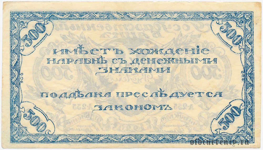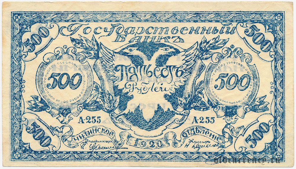 Чита, атаман Семенов, 500 рублей 1920 года. Синяя