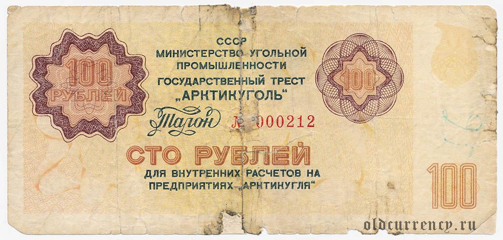 Шпицберген, "Арктикуголь", 100 рублей (1979) года