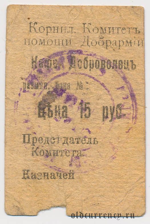 Симферополь, Корниловский комитет помощи Добрармии, 15 рублей