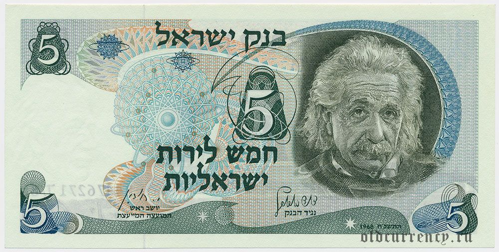 Израиль, 5 лир 1968 года. Номер черный