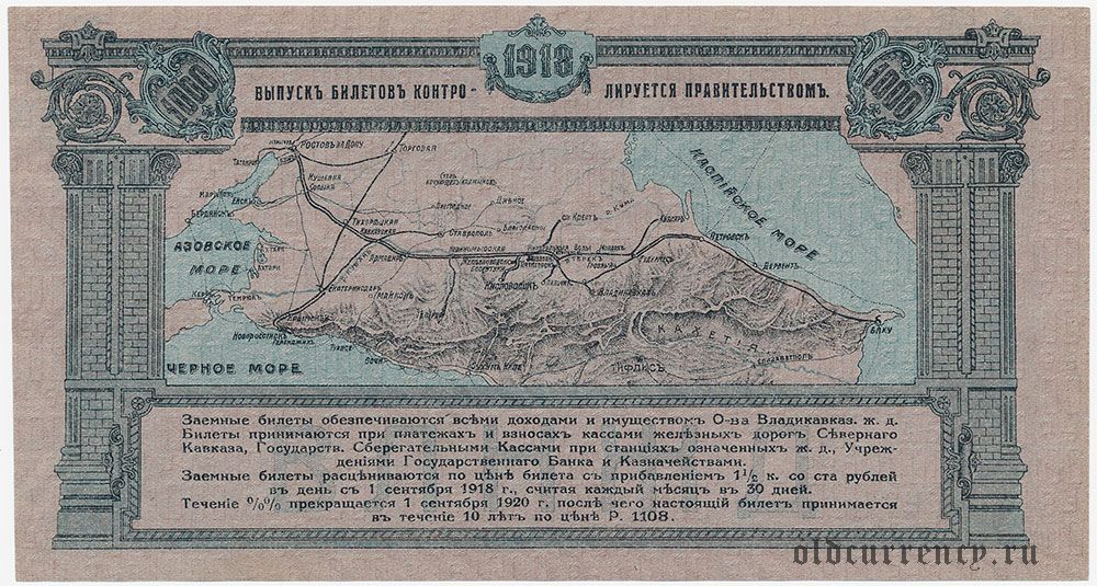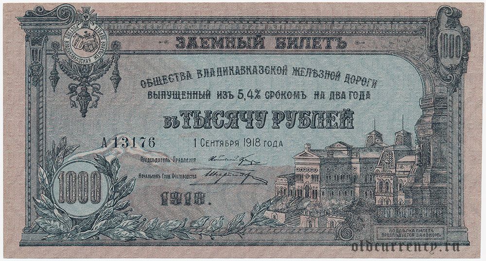 Владикавказская ж.д., 1000 рублей 1918 года