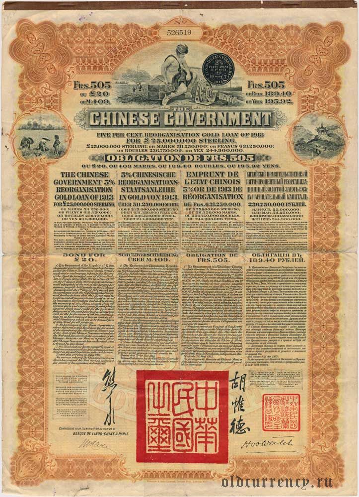 Китайский правительственный пяти-процентный реорганизационный золотой заем 1913 года