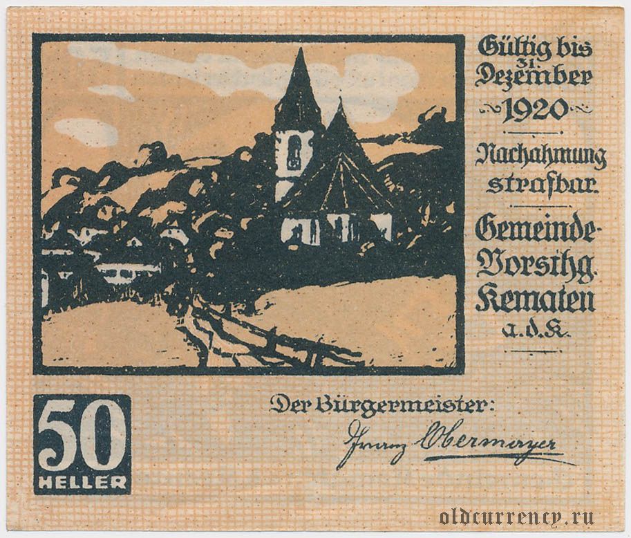 Австрия, Кематен-на-Кремсе (Kematen an der Krems), 50 геллеров 1920 года