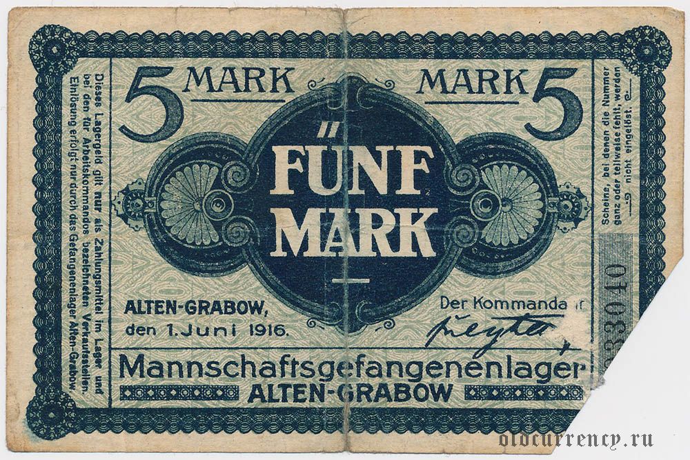 Германия, Alten-Grabow, 5 марок 1916 года