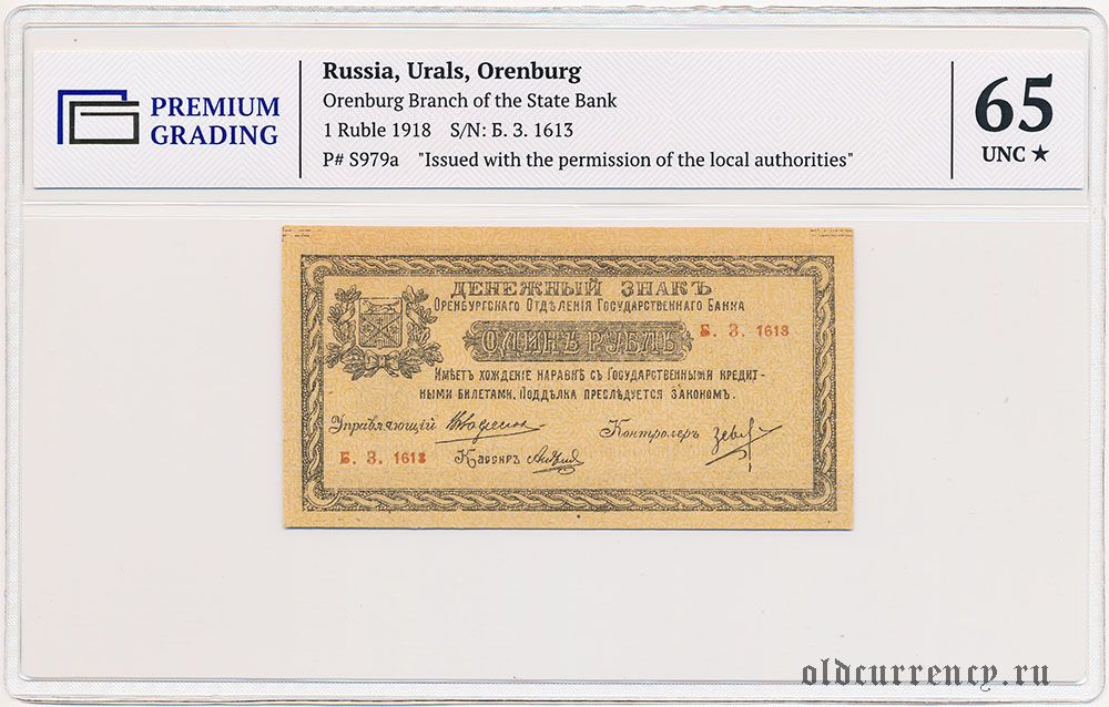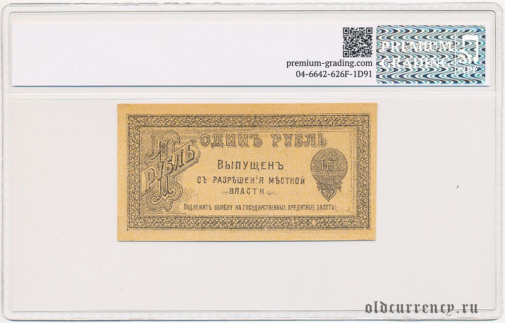 Оренбург, С разрешения местной власти, 1 рубль 1918 года. В слабе PG
