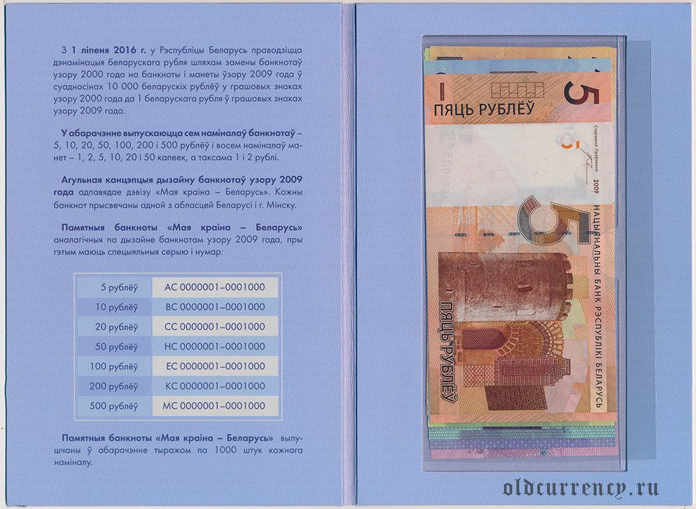 Беларусь, комплект банкнот в буклете: "Мая Краiна Беларусь" 2009 год