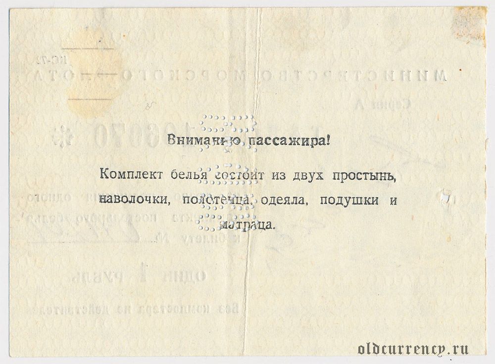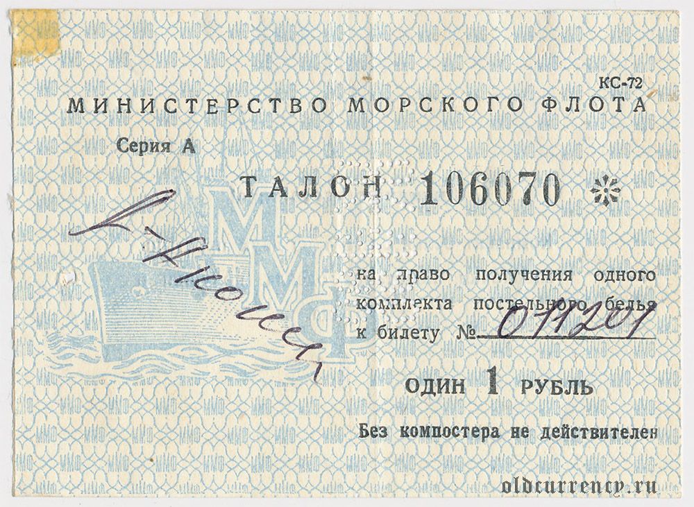 Талон на право получения постельного белья, был использован на грузопассажирском теплоходе «Акоп Акопян» — из серии судов типа «Тисса». Построен в 1955 году на верфи Gheorgiu Dej Hajógyár в Будапеште (Венгрия).
