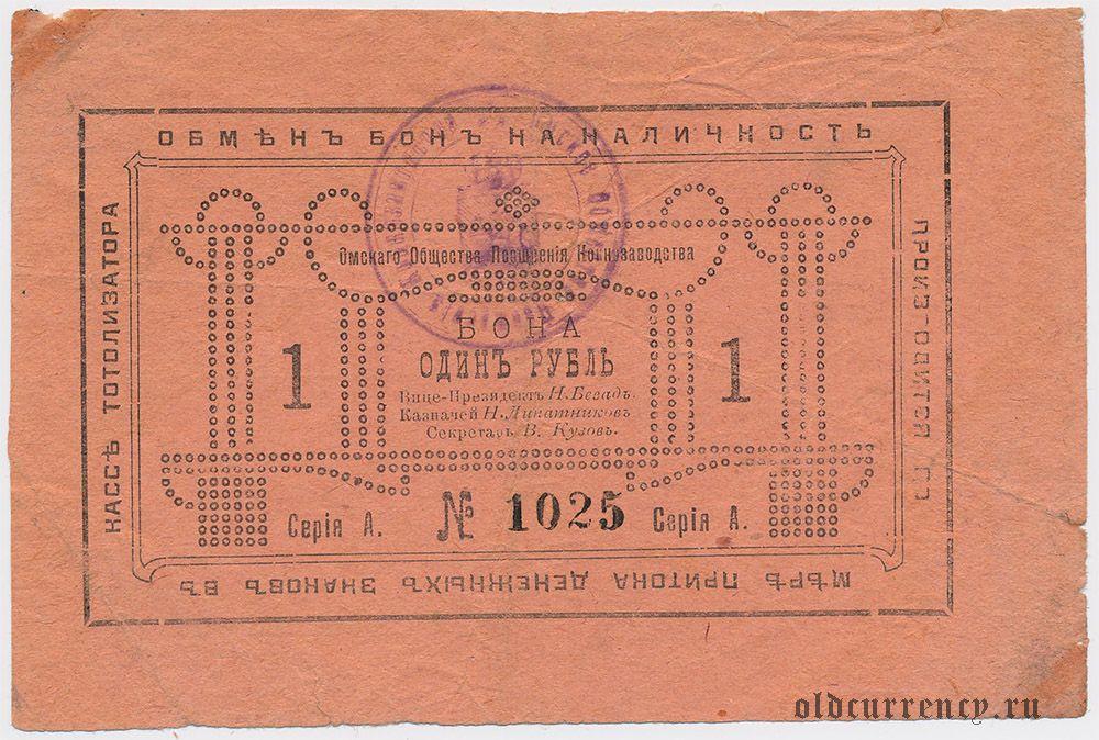 Омск, Общество поощрения коннозаводства, 1 рубль