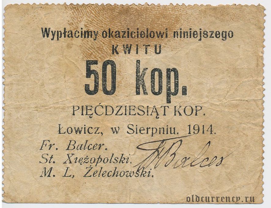 Польша, Лович (Łowicz), 50 копеек 1914 года