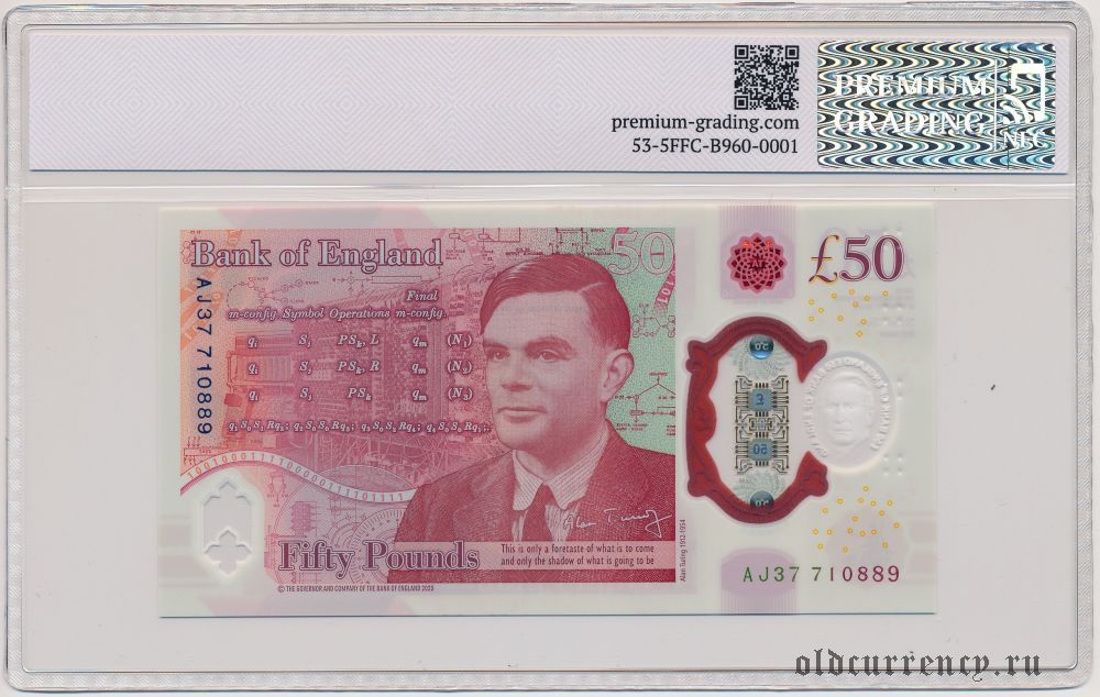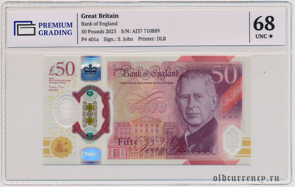 Великобритания, 50 фунтов 2023 года. Полимерная. В слабе PG 68