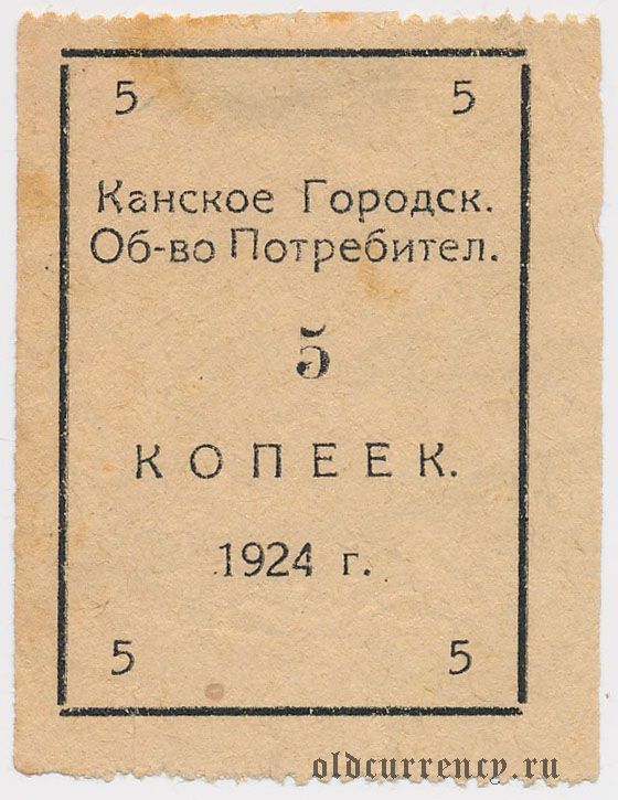 Канск, городское общество потребителей, 5 копеек 1924 года
