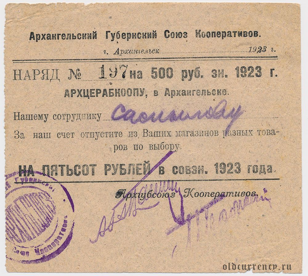 Архангельск, губернский союз кооперативов, 500 рублей 1923 года