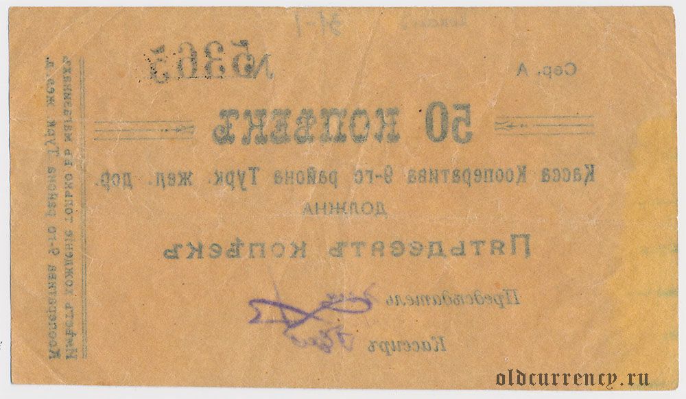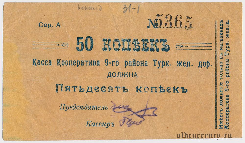 Коканд, Касса Кооператива 9-го р-на Туркестанской ж.д., 50 копеек