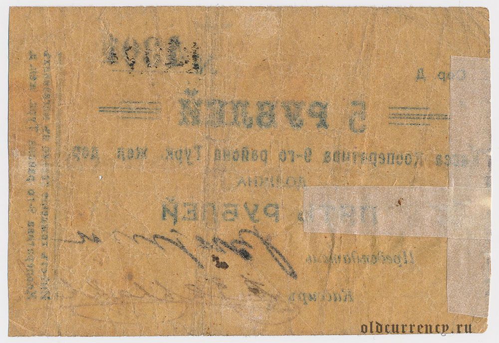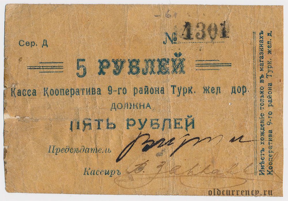 Коканд, Касса Кооператива 9-го р-на Туркестанской ж.д., 5 рублей