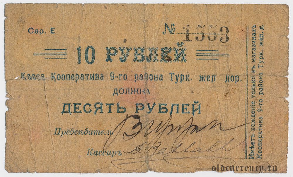 Коканд, Касса Кооператива 9-го р-на Туркестанской ж.д., 10 рублей