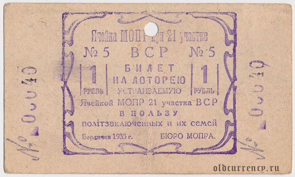Бердичев, Ячейка МОПРа при 21 участке ВСР, лотерея 1933 года