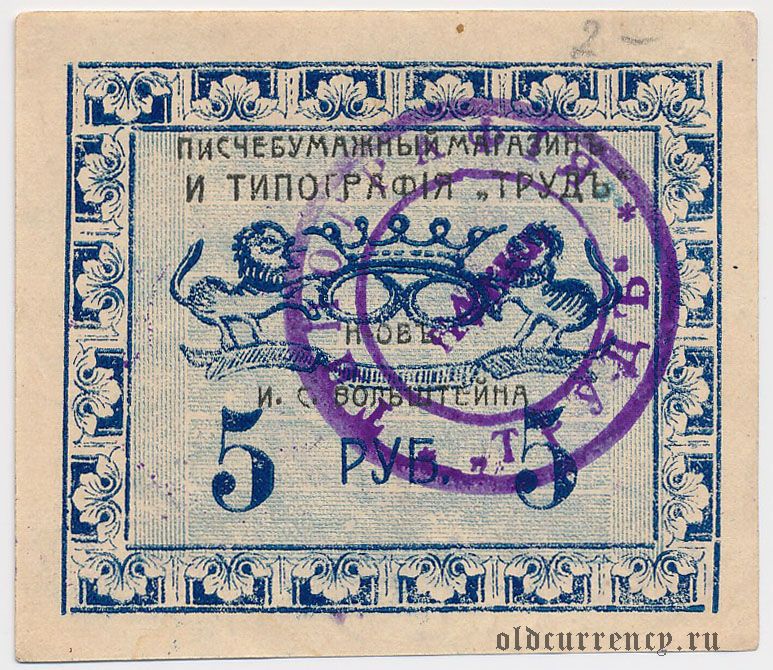 Симферополь, Писчебумажный Магазин и Типография «Труд», 5 рублей