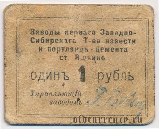 Яшкино, Заводы Западно-Сибирского Товарищества Извести, 1 рубль 1918 года