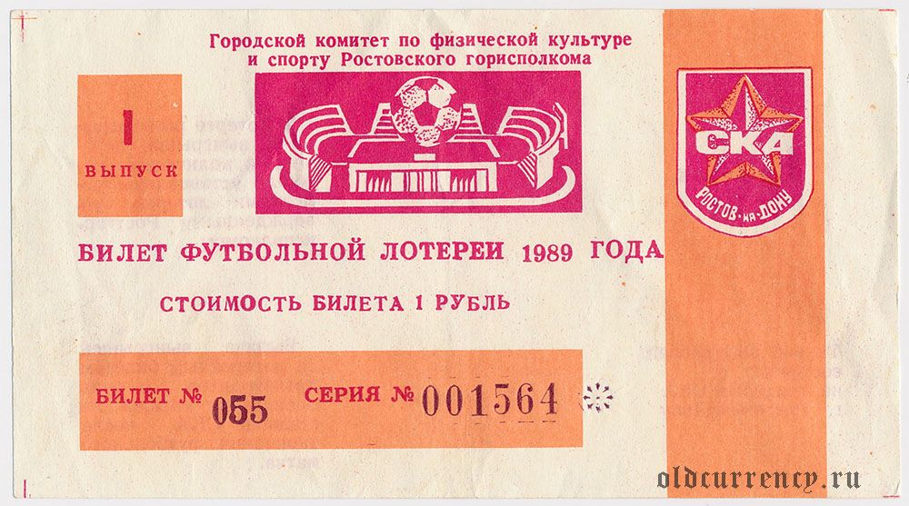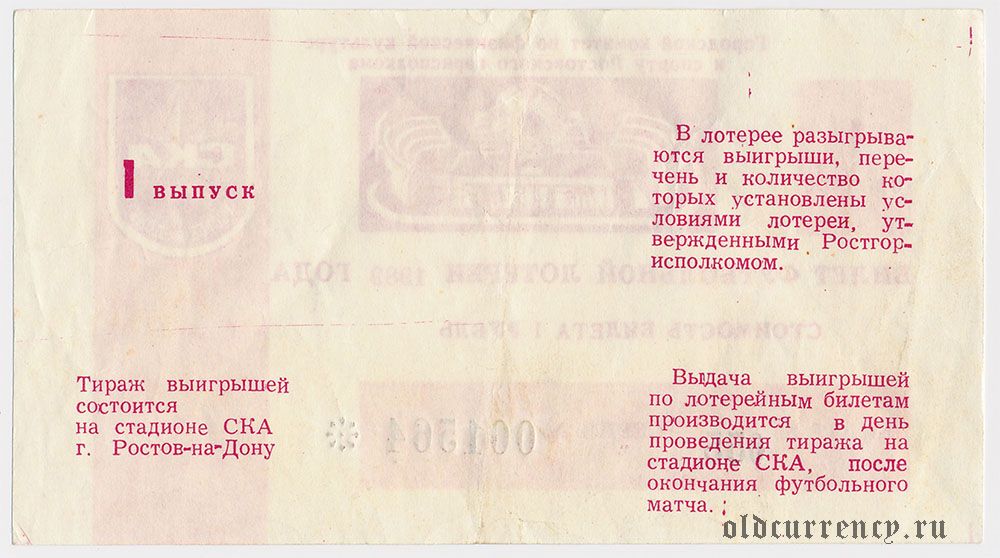 Ростов-на-Дону, футбольная лотерея 1989 года, 1 выпуск
