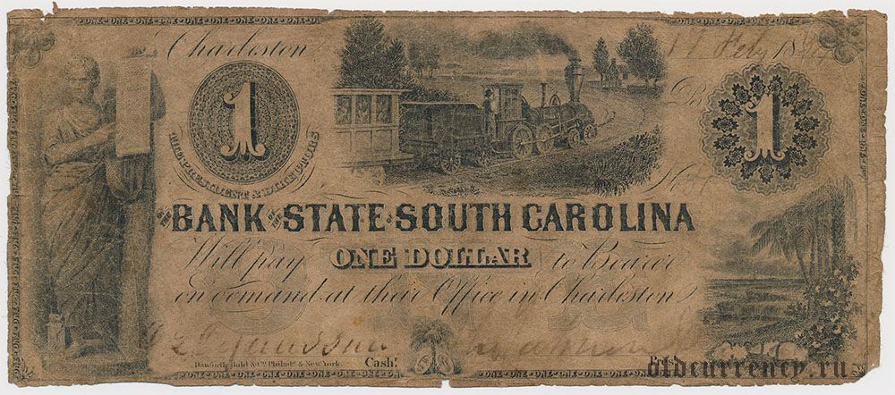 США, Bank of the State of South Carolina, 1 доллар 1834 года