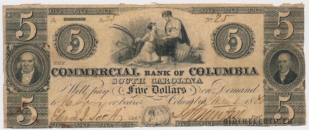 США, Commercial Bank of Columbia, 5 долларов 1856 года