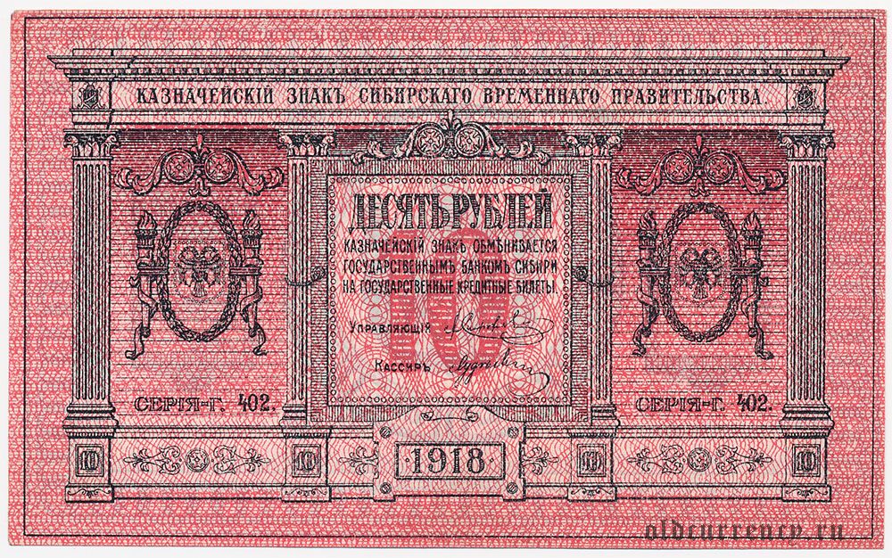 Сибирское Временное Правительство, 10 рублей 1918 года. Серия: 402