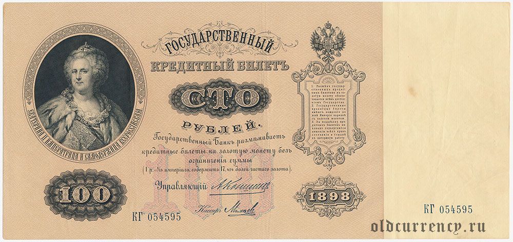 100 рублей 1898 года. Коншин/Михеев