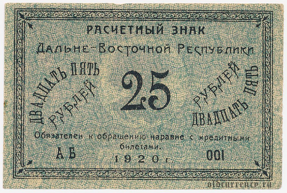 Дальне-Восточная Республика, 25 рублей 1920 года